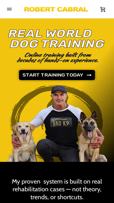 74%Robert Cabral offers online dog training courses and video lessons. Learn how to train a dog online using a proven system that works.
