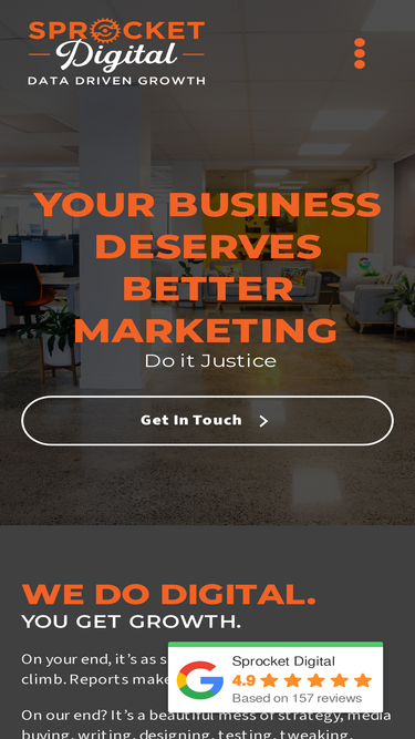 62%At Sprocket, we blend strategy, creativity, and full-funnel thinking to drive real digital growth. From Google Ads to TikTok, SEO to email, we pick the right channels and make every dollar work harder.