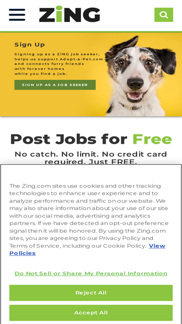 zing is a career website/job board that cares. we care about your job search, we care about the managers trying to find you, we care about the community, we care about the arts ... we even care about cute animals because, who doesn't?