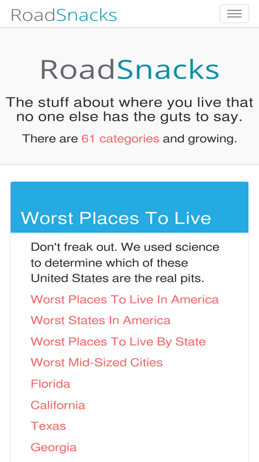 89%Find out the best and worst places to live in America. We go where your real estate agent dares not tread.