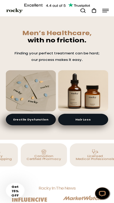 73%Rocky is a men's brand with a unique feel and seamless user experience. Our focus is to normalize men's health and eliminate the stigma surrounding it.