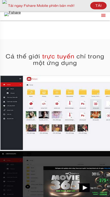 87%Fshare là dịch vụ lưu trữ và chia sẻ dữ liệu trực tuyến giúp khách hàng lưu trữ thông tin, dữ liệu (album ảnh, phim, phần mềm, tài liệu, game, nhạc, v.v...) mọi lúc, mọi nơi, tương thích trên mọi thiết bị.