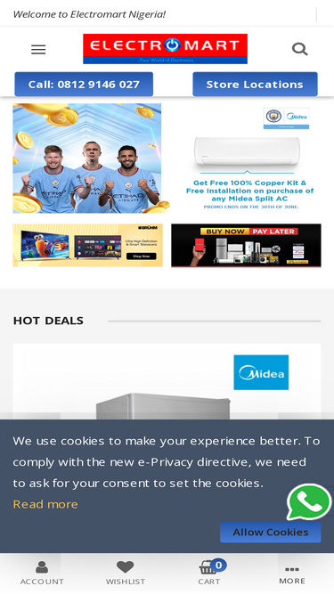 85%Buy Electronics, Home and Kitchen Appliances, EVs, etc. online in Nigeria at the best prices on Alabamart. Get upto 2 Years Warranty on all products, Same day delivery in Major Cities across the Nation, Aftersales Services & Installation, Cash on Delivery and Great customer care experience. Call/Whatsapp: 07025002720