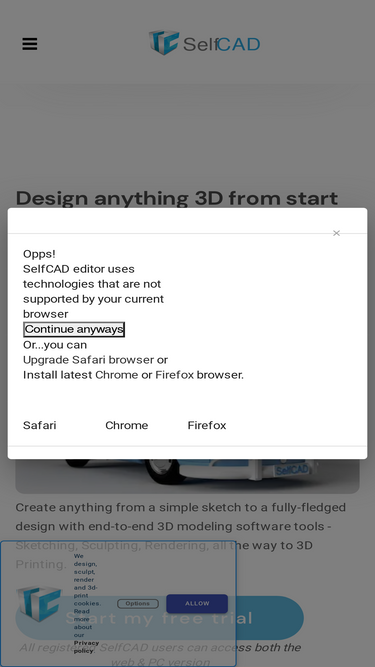 95%SelfCAD is a 3D modeling software that allows you to 3D design, model, sculpt, sketch, render, animate. The best Free Cad online software.