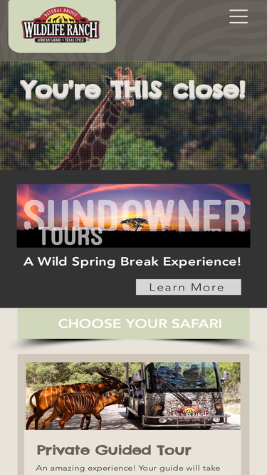 92%Take a walk on the wild side at Wild Animal Safari! Cruise through our drive-thru safari, explore our walk-thru zoo, and meet amazing animals near Springfield and Branson. It’s a roaring good time for all ages!