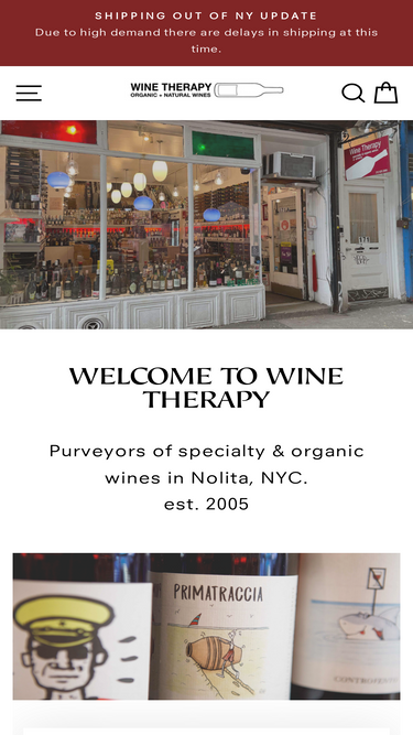 74%Wine Therapy opened in 2005, focusing on Organic & Biodynamic & natural wines. We are a small store in Nolita, we carry an eclectic selection of smaller scale producers who are dedicated farmers, treating their land with love and pridefulness. We also offer a small selection of crafted artisanal liquors.