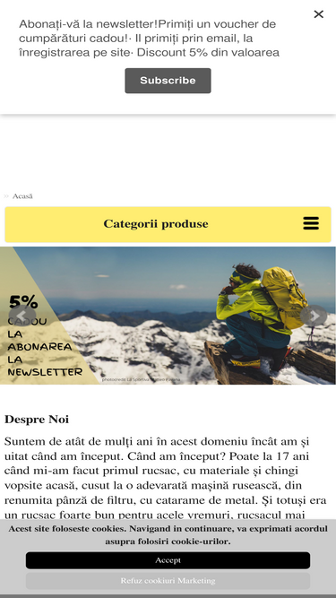 62%magazin echipament montan. comercializam o gama variata de saci de dormit, corturi, bocanci de munte si rucsaci de la branduri recunoscute la nivel mondial pentru performanta si profesionalism.