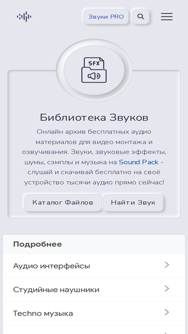 86%большая коллекция звуков, шумов и эффектов. звуки можно использовать для презентаций и видеороликов. файлы доступны для прослушивания и скачивания. более 6000 файлов в разделе семплов и лупов для создания музыки самостоятельно. библиотека музыки для вашего видеоблога на youtube и тик ток. музыка для релаксации, сна и расслабления, йоги и массажа.