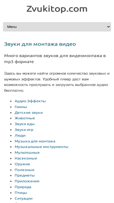 96%здесь вы найдете каталог бесплатных звуков, которые бывают нужны для разного рода монтажа. скачивайте звуки и аудиоэффекты бесплатно на нашем сайте (zvukipro.com).