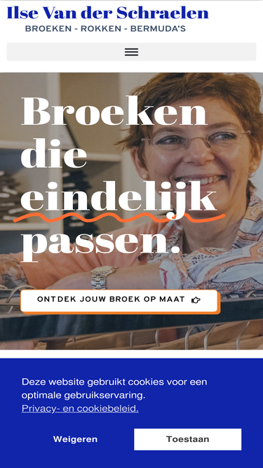 66%Heb je het gevoel dat geen enkele broek echt juist aanvoelt? Dan ben je bij mij aan het juiste adres. Ik help je zoeken naar de perfecte broek die bij jou past.