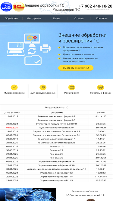 Обслуживание 1С по всей России! Разработка и обновление конфигураций. Множество полезных инструкций, внешних обработок, отчетов и печатных форм 1С
