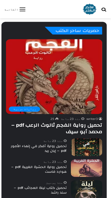 مكتبة روايات وكتب PDF بالعربية: تحميل روايات، كتب، مؤلفين، سلاسل كتب، بحث سريع، وتطبيقات أندرويد و iOS.