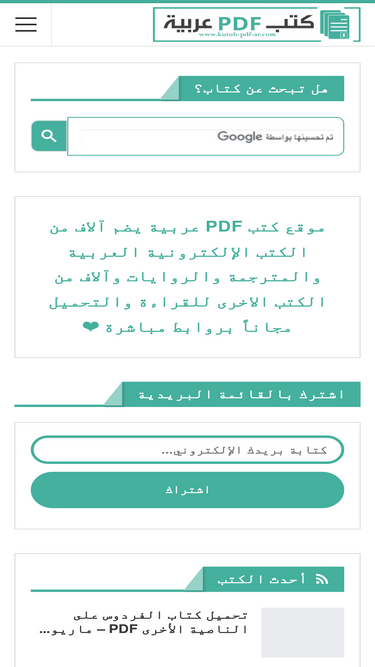 91%موقع كتب PDF عربية يضم آلاف من الكتب الإلكترونية العربية والمترجمة والروايات وآلاف من الكتب الاخرى للقراءة والتحميل مجاناً بروابط مباشرة.