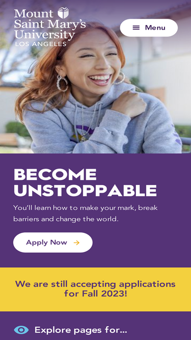 90%mount saint mary's university is la's only women's liberal arts university - at our two historic campuses in downtown and hollywood we empower students to become unstoppable.