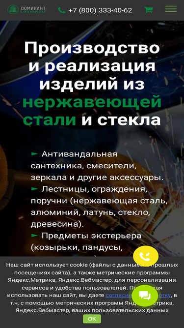 Компания ООО Доминант производит и реализует металлоконстукции из нержавеющей стали, для заказа позвоните нам по номеру 8-800-333-40-62.