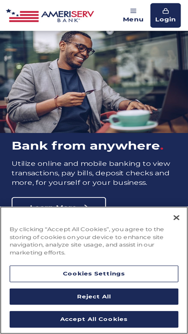 73%ameriserv bank is proud to serve pa and md. explore our personal and business products and services including checking, savings, loans, mortgages and more.