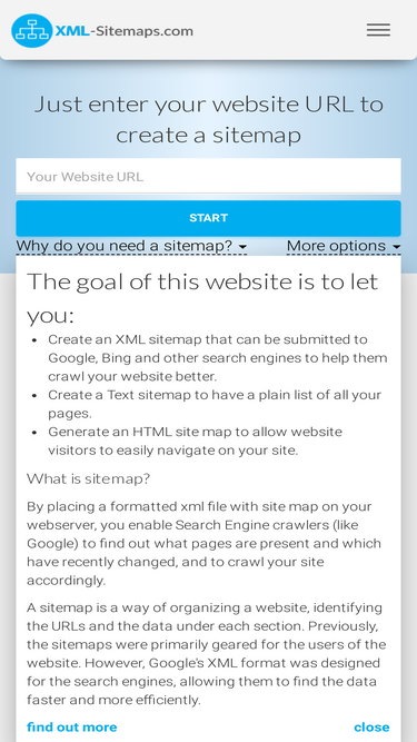 80%free online google sitemap generator. xml-sitemaps.com provides free online sitemap generator service, creating an xml sitemap that can be submitted to google, bing and other search engines to help them crawl your website better. it will also generate an html site map to allow your website visitors to navigate easier.
