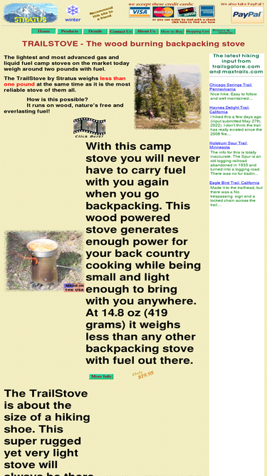 80%wood burning backpacking camp stove, never runs out of fuel.