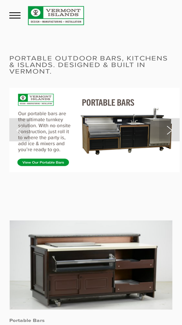 Outdoor Portable Bar with Kegerator & Dump Sink has an ice well, double speed rails, work counter & pull out glass rack drawers. Available in any of our standard finishes.