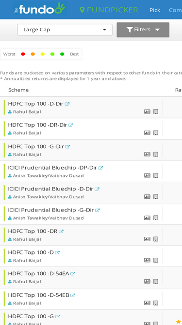98%fundpicker makes mutual fund selection super-convenient. with more than 50 filters, an advanced super-fast mutual fund screener and different views, mutual fund selection is now a cake walk.