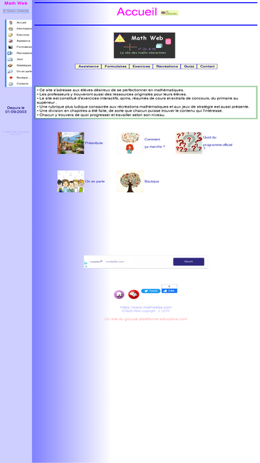 les mathématiques scolaires du primaire au supérieur. des milliers d'exercices de math corrigés, des résumés de cours interactifs, pour le primaire, collège, lycée et le supérieur.