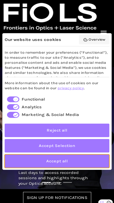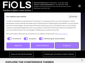 Frontiers in Optics (FiO) is the Optical Society’s (OSA) Annual Meeting and is being held together with Laser Science (LS) , the annual meeting of the American Physical Society (APS) Division of Laser Science (DLS). The two meetings unite the OSA and APS communities for five days of quality, cutting-edge presentations, fascinating invited speakers and a variety of special events spanning a broad range of topics in optics and photonics—the science of light—across the disciplines of physics, biology and chemistry.