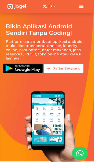 68%jagel.id merupakan platform cara membuat aplikasi sendiri tanpa coding. Untuk Android, jagel ada sebagai cara membuat aplikasi di playstore gratis.