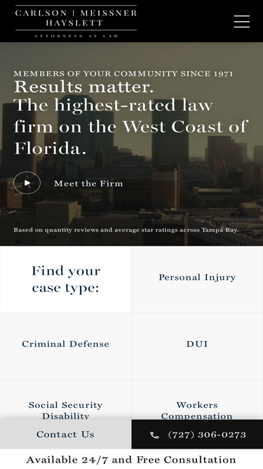 When you need exceptional legal services in New Port Richey, turn to Carlson, Meissner, Hayslett P.A., the top-tier law firm in Florida. Our skilled attorneys are committed to representing your interests in personal injury, car accidents, and more. Contact us now for reliable guidance and dedicated advocacy.
