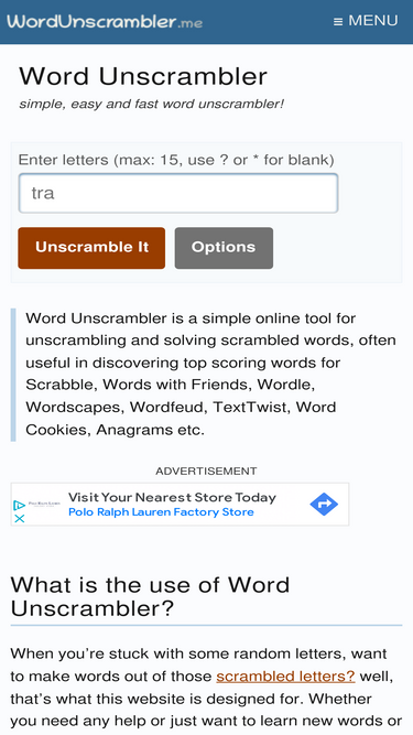 wordunscrambler.me - unscramble letters to make new words. find hidden words for scrabble, wordle, words with friends, and also score better, learn faster and win!
