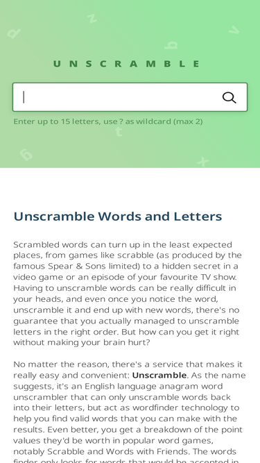 88%word unscrambler - unscramble or descramble words and letters. unscramble.me helps you in board games like scrabble, words with friends and many more.