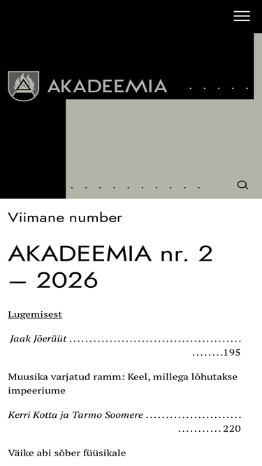 Selle vormi kaudu saad toetada Eesti kultuuriajakirjandust. Annetades endale sobiva summa aitad hoida elus Eesti kultuuriajakirjanduse juhtivaid väljaandeid. Toetada saab SA Kultuurilehe kõiki 15 väljaannet, minnes nende kodulehtedele ja vajutades nupule “Toeta”. Annetusi kogutakse vastava väljaande kuludeks, honorarifondi tarbeks. Makseid vahendab Maksekeskus AS. Teie andmeid kasutatakse Maksekeskuse privaatsuspoliitika reegleid järgides. Toetada saad ka ülekandega alljärgnevate rekvisiitidega Makse saaja: RahandusministeeriumSEB Pank: EE891010220034796011 (BIC/SWIFT: EEUHEE2X)Swedbank: EE932200221023778606 (BIC/SWIFT: HABAEE2X)LHV Pank: EE777700771003813400 (BIC/SWIFT: LHVBEE22)Luminor Bank: EE701700017001577198 (BIC/SWIFT: RIKOEE22) viitenr. 3500078720 Palun lisa selgituse reale toetatava väljaande nimi, näiteks Akadeemia. Toetuste koguja on SA Kultuurileht SA Kultuurileht annab välja Eesti tähtsamaid kultuuriajakirju ja -ajalehti: Akadeemia,...