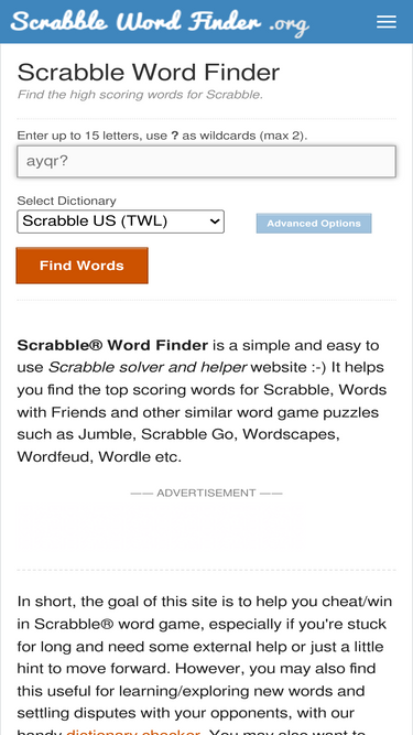 scrabble word finder helps you find words and cheat in scrabble and solve word game puzzles like words with friends, wordfeud, jumble, wordle, spelling bee etc.