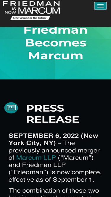 effective september 1, friedman llp is now marcum llp – creating one of the most innovative accounting and advisory firms in the u.s.