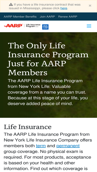 aarp life insurance program from new york life offers term and permanent life insurance products with no medical exam, just health and other information.