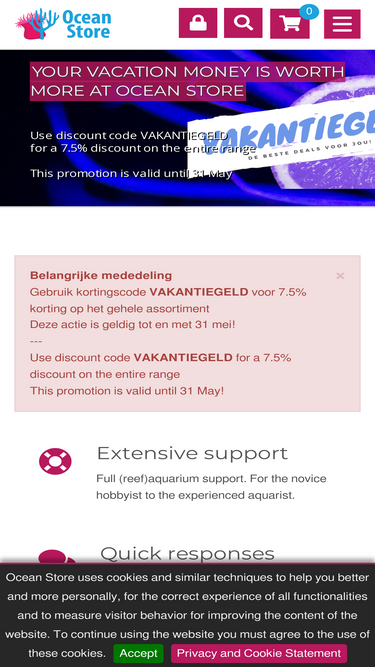 75%Ocean Store Dordrecht for all your (marine) aquarium items such as protein skimmers, feed pumps, coolers, minerals, food and much more.