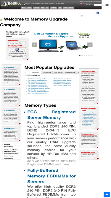 memory upgrade for computer, server and memory ram for laptop notebooks, use memory upgrade selector for dell,hp compaq,gateway,ibm,apple,sony and all other computer memory upgrades