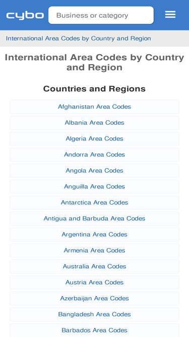 87%Find Area Codes anywhere in the world using Cybo.com, the Global Business Directory.