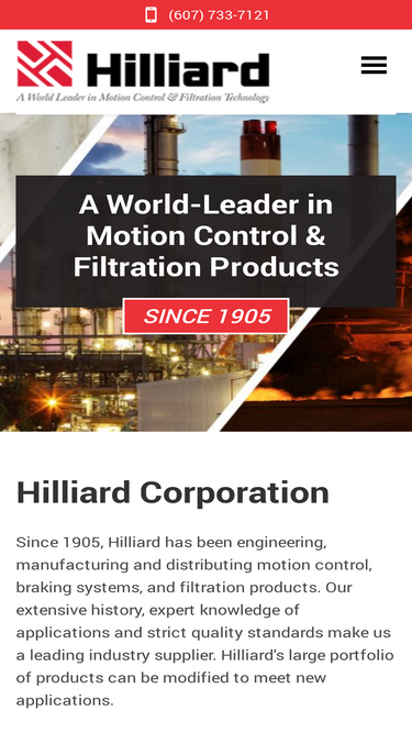 welcome to hilliard corporation—a world leader in motion control and filtration technology since 1905 based in elmira, ny serving customers worldwide. hilliard is iso 9001:2015 certified organization.