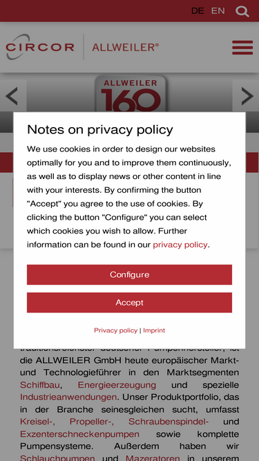 100%als traditionsreichster deutscher pumpenhersteller ist die allweiler gmbh europäischer markt- und technologieführer im bereich pumpen und pumpentechnologie in den marktsegmenten schiffbau, energieerzeugung und spezielle industrieanwendungen. das produktportfolio umfasst kreiselpumpen, schraubenspindelpumpen, exzenterschneckenpumpen, propellerpumpen, schlauchpumpen, zahnradpumpen, schmierungssysteme, ölaufbereitungssysteme, mazeratoren und komplette pumpensysteme.