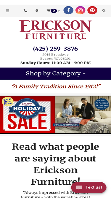 erickson furniture is a family owned furniture & mattresses store located in everett, wa. we offer the best in home furniture & mattresses at discount prices.