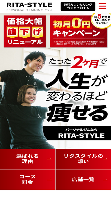 100%たった2か月で人生が変わるほど痩せる。完全個室・マンツーマンの短期集中ダイエットジムです。質の高いパーソナルトレーナーが、あなたに最適なパーソナルトレーニングを提供します。毎日のお食事管理もおこなうパーソナルトレーニングジムです。