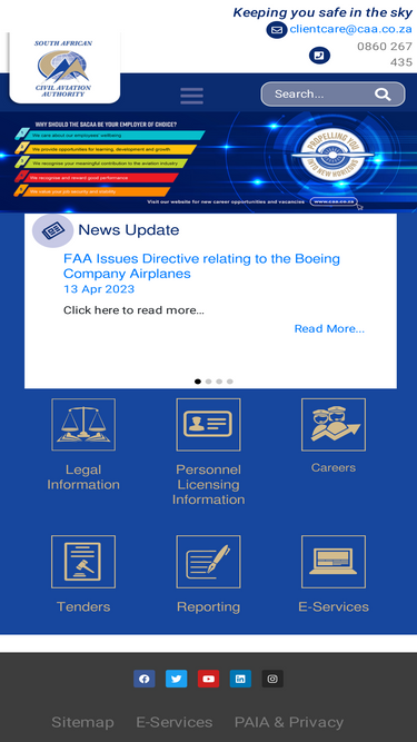 About our Socio-Economic Development Programmes Requests for Support × About our Socio-Economic Development Programmes Requests for Support Socio-Economic Development About our Socio-Economic Development Programmes As a good corporate citizen, it is important for the SACAA to make an impact beyond its mandate of controlling, promoting, regulating, supporting, developing, enforcing, and continuously improving levels of safety […]