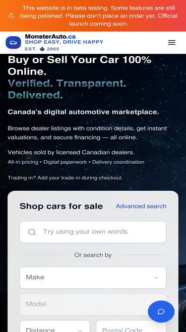 50%MonsterAuto.ca is Canada's premier direct-to-home car buying platform. Browse, select, and have premium vehicles delivered directly to your driveway with a seamless and transparent online experience.