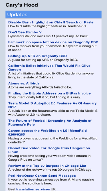 gary's hood is a collection of articles and online applications. features a very popular runescape auto typer.