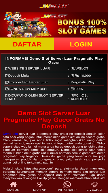 100%Demo slot server luar adalah situs slot online yang menyediakan game pragmatic play slot demo gacor gratis no deposit terlengkap