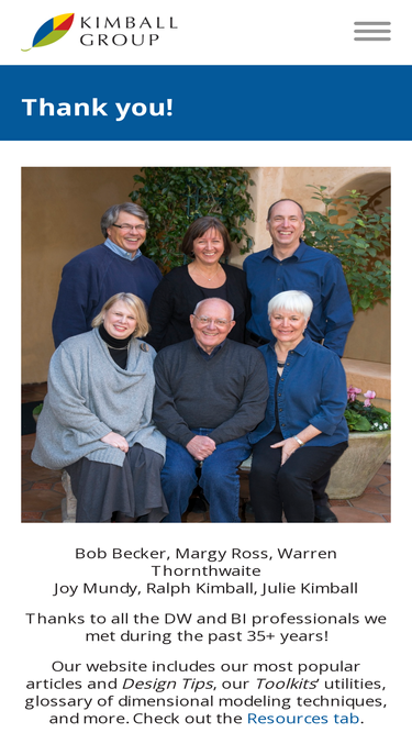 The Kimball Group is the source for data warehousing expertise. A team of dedicated data warehousing professionals, bringing 100+ years of experience.