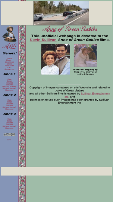 devoted to the kevin sullivan films, this site includes scripts, sound clips, pictures, and more. voted #1 fanne site by sullivan entertainment.