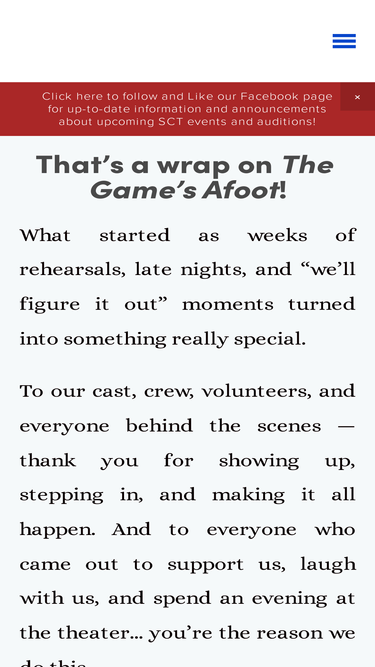 Official Website of the Southington Community Theatre. SCT has been entertaining audiences of Southington, CT with quality and engaging theatre productions since 1956.