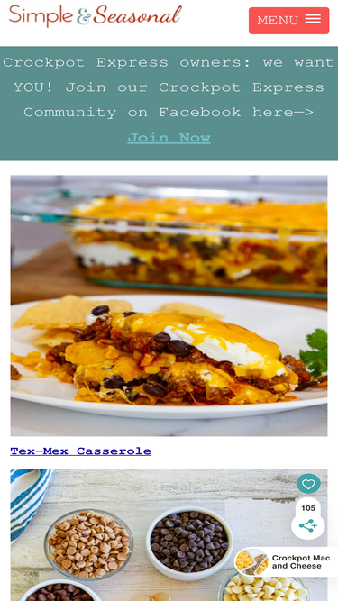 Making life simpler and holidays happier with easy recipes, helpful tips and creative ideas for every season! Also featuring Crockpot Express recipes.