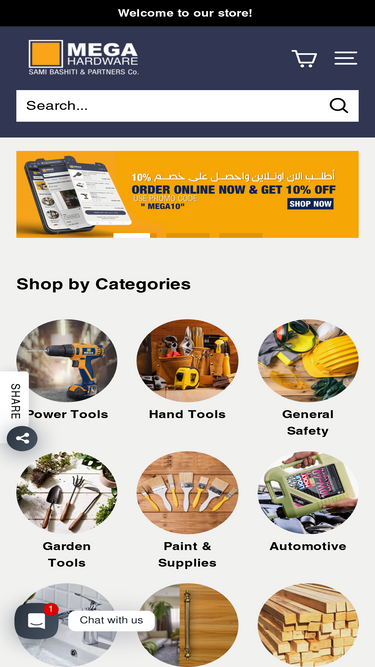 Mega Hardware is a re-branded hardware store by Sami Bashiti & Partners Co. with more than thirty years of experience in the fields of hardware, tools, home and garden center.